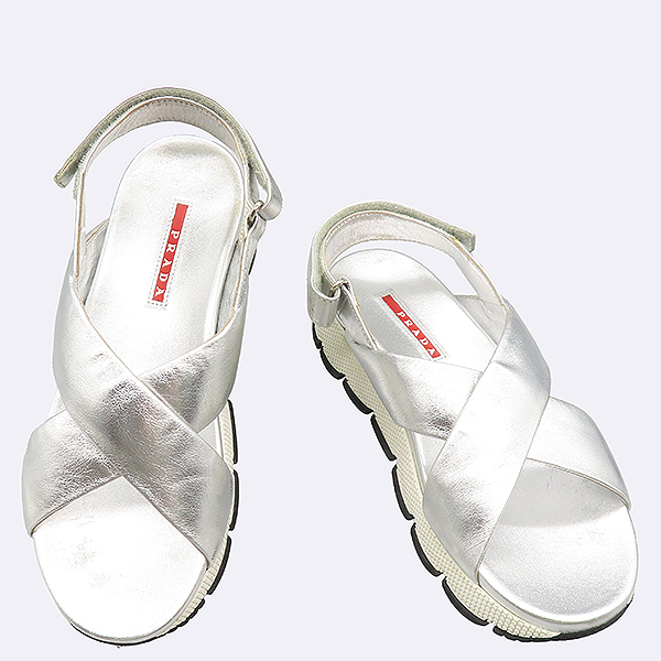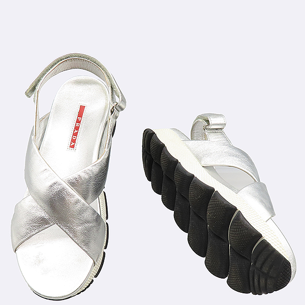 Prada(ÇÁ¶ó´Ù) 3X6284 ARGENTOÄ÷¯ ½Ç¹ö ¸ÞÅ»¸¯ ·¹´õ ¿ÀÇÂÅä º§Å©·Î ¿©¼º¿ë »÷µé - 235MM [°³²º»Á¡]ÀÔ´Ï´Ù.